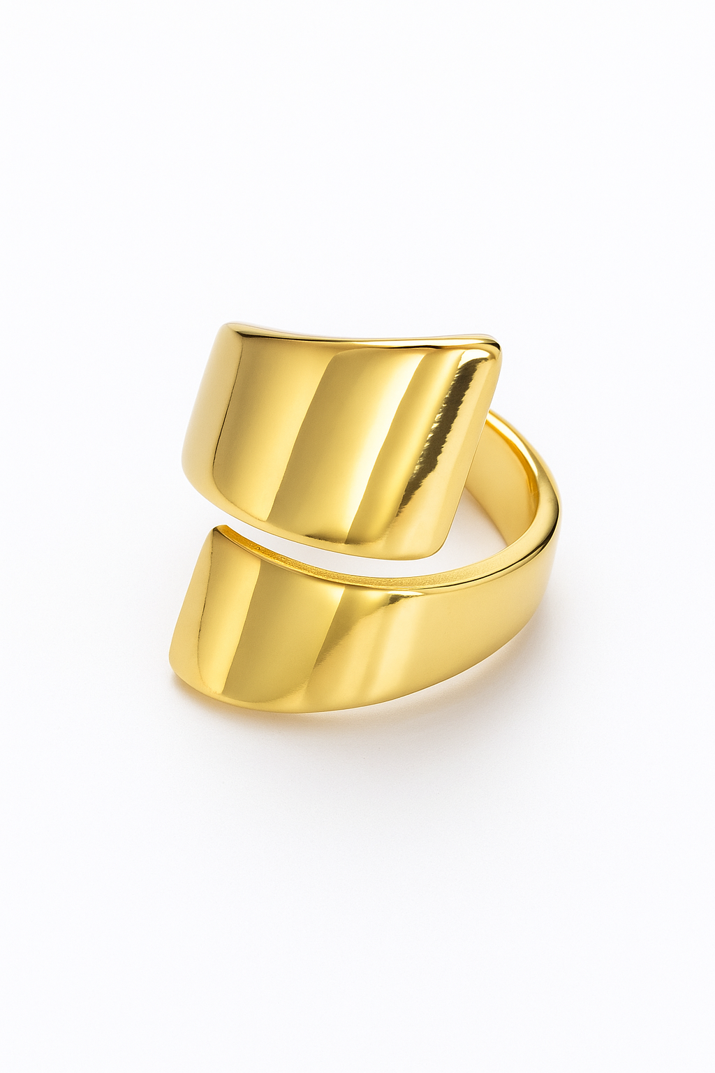 A bold minimalist double-band wrap ring with a sleek polished finish and modern sculptural shape. • Minimalist Statement Ring • Brass, 24k Gold Filled • Hypoallergenic • Tarnish Resistant •...