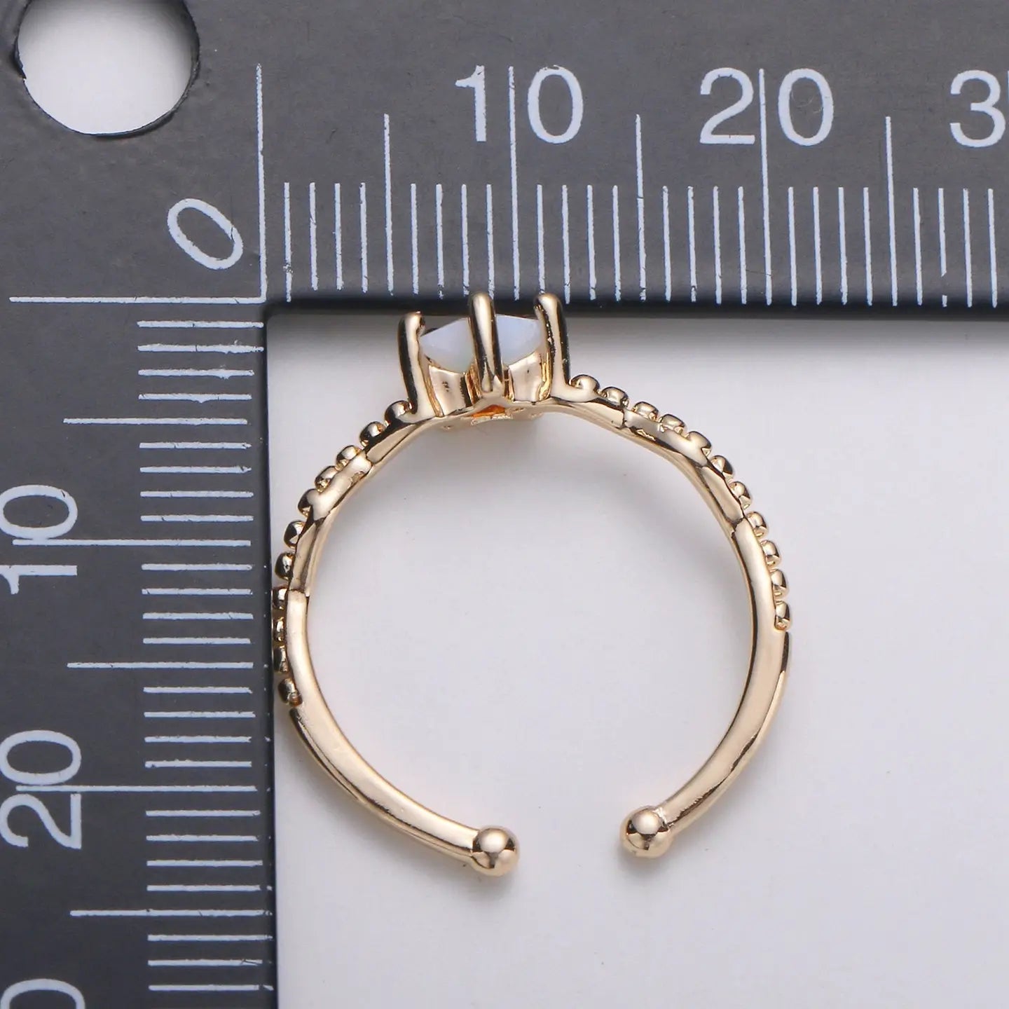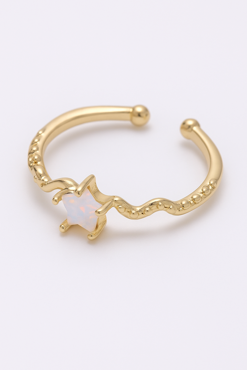 A delicate gold band accented with a glowing opal stone and subtle beaded curves for a fluid, feminine touch. Lightweight, elegant, and adjustable for easy wear. • October Birthstone Ring...