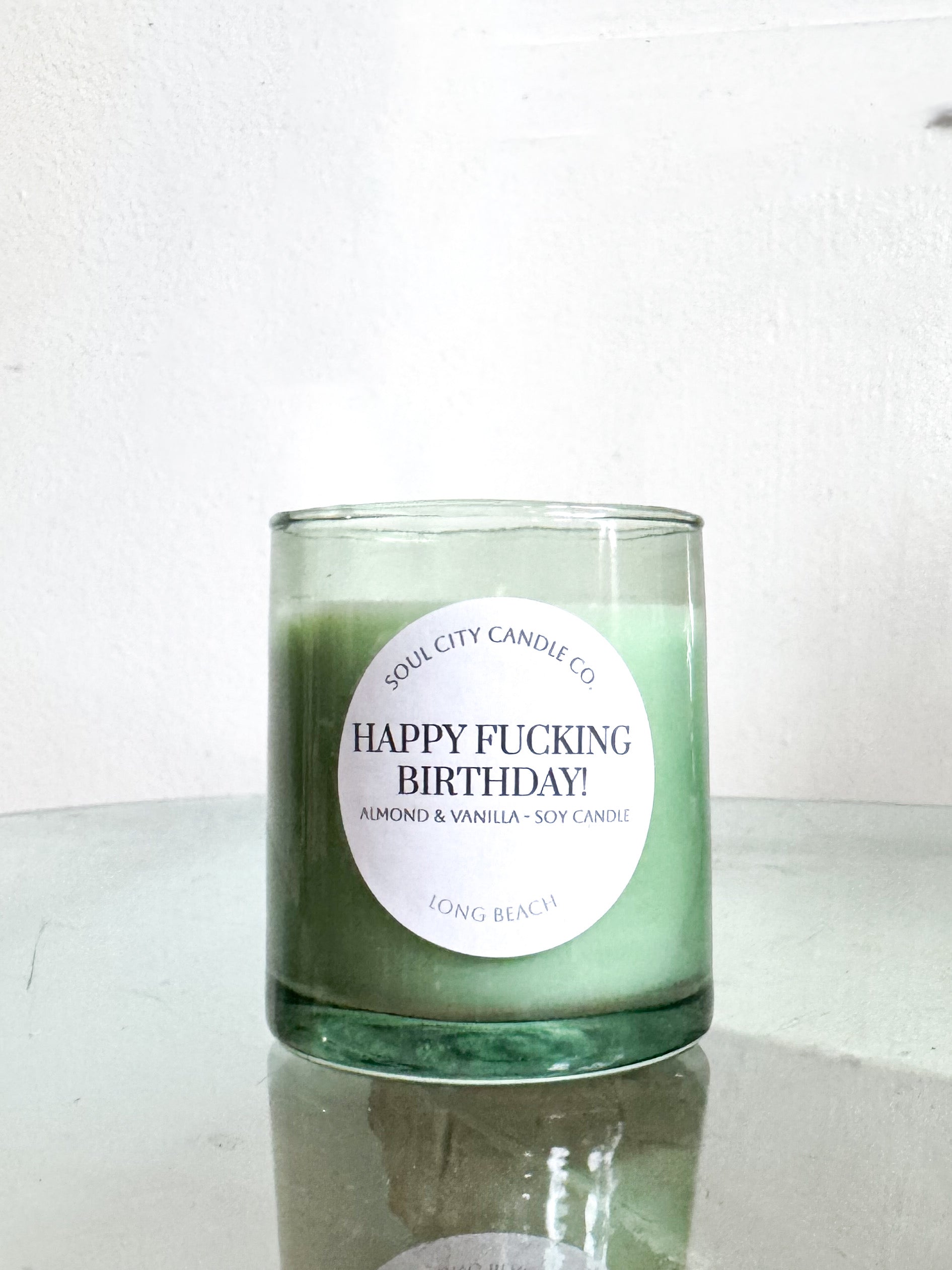 Happy f*cking birthday. Say it louder. Say it better. A clean-burning soy candle in a modern green glass jar. • 100% Soy Wax • Clean-Burning Cotton Wick • 9 oz...