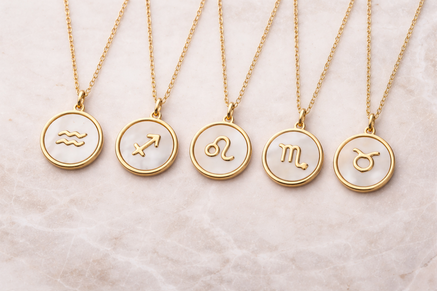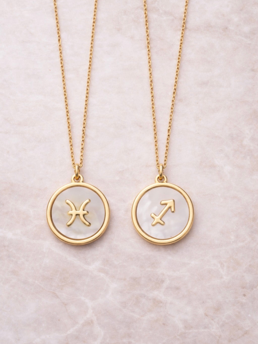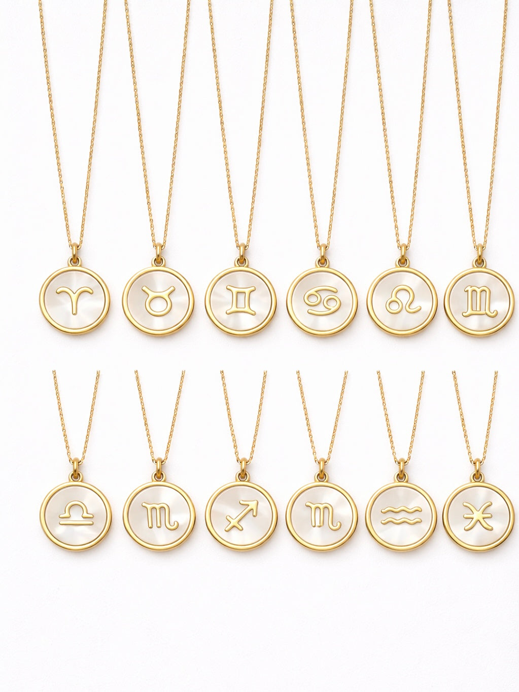 A gold-filled constellation necklace with a mother of pearl center. • Gold Filled • Mother of Pearl • Hypoallergenic • Tarnish Resistant • Nickel and Lead Free • Lobster Clasp...