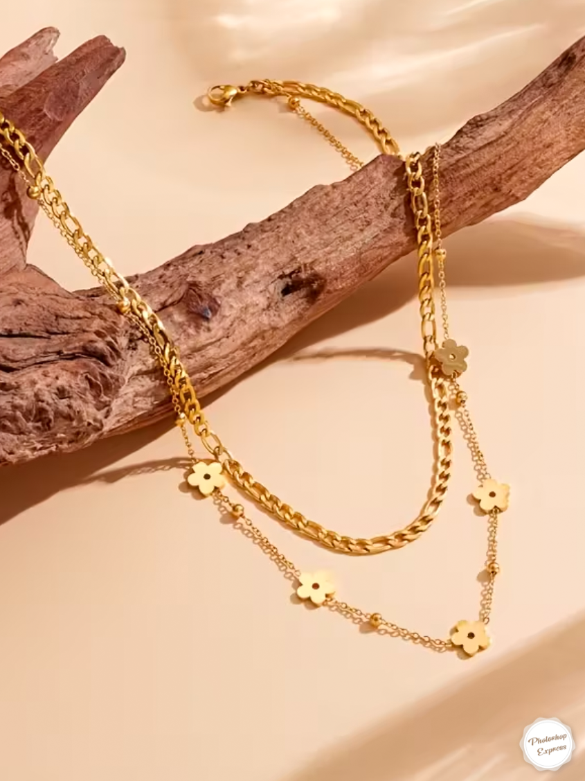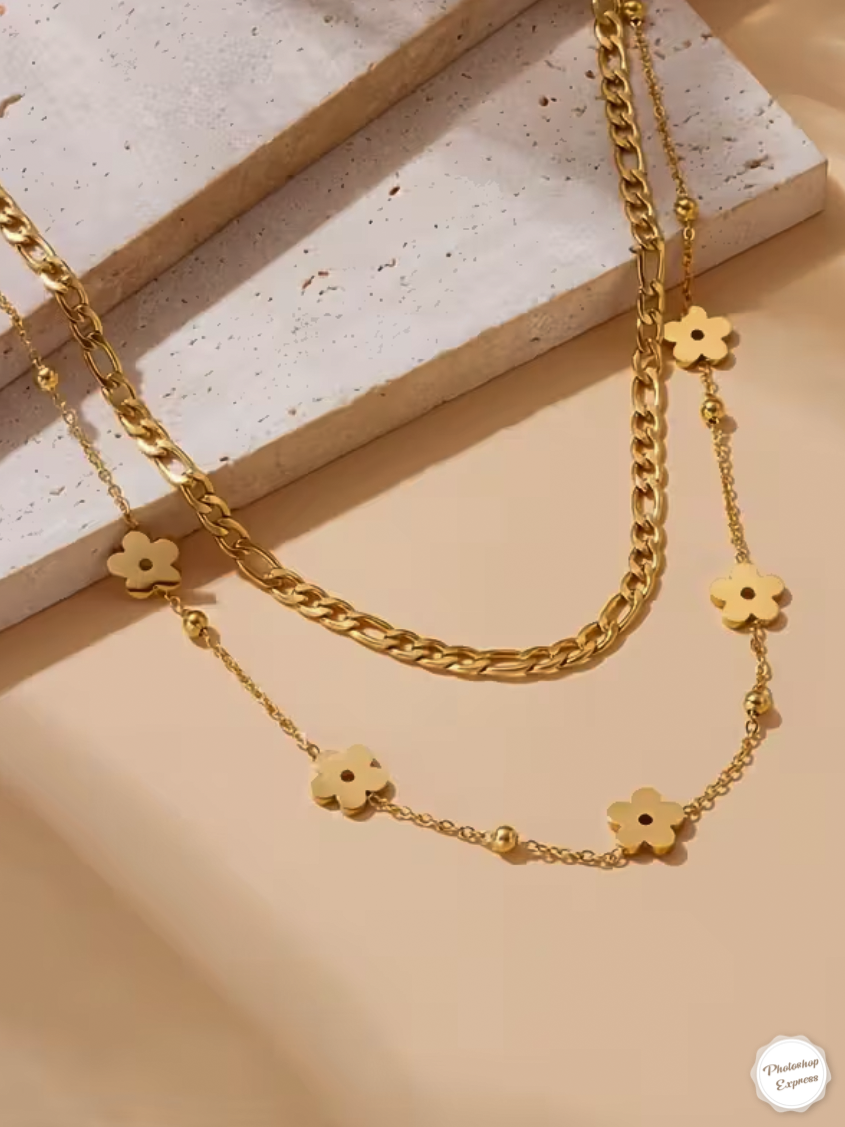 A dainty flower tiered chain necklace. • Stainless Steel • Tarnish Resistant • Nickel and Lead Free • Adjustable Length with Extender • Imported