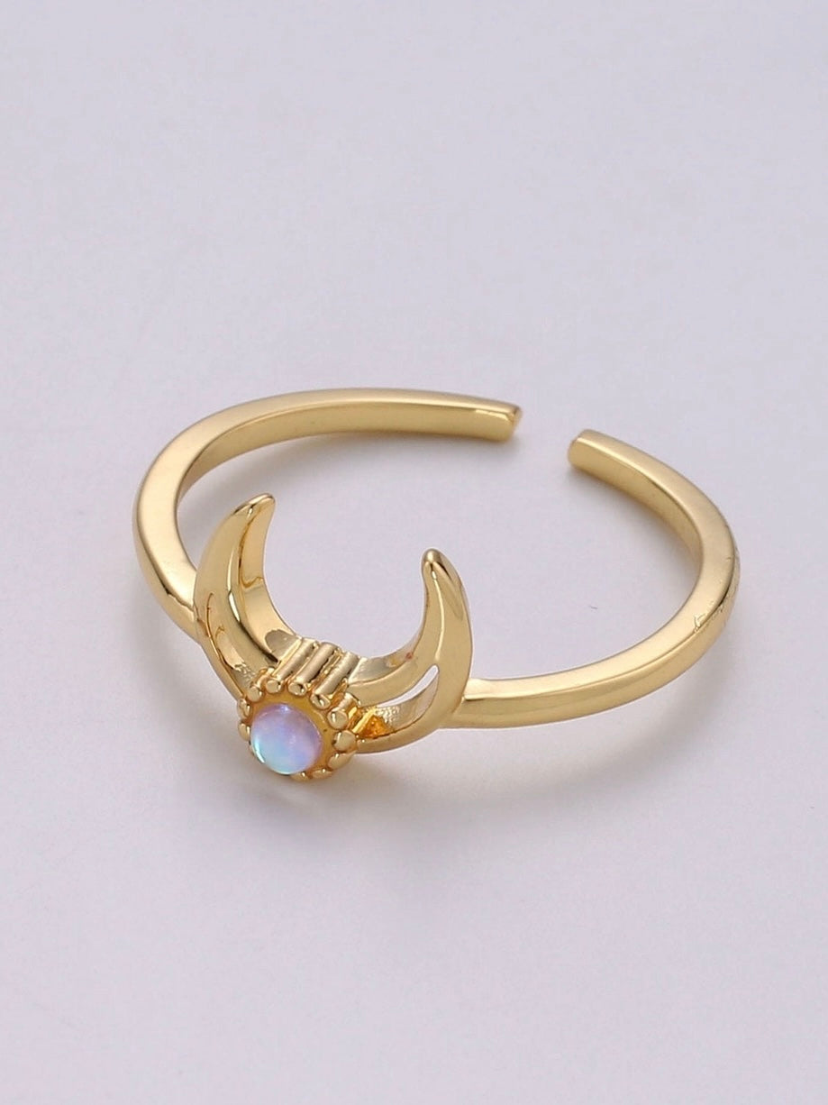 Celestial Crescent Moon Opal Ring October Birthstone Ring 925 sterling silver with Thick Gold Plated Nickel Free, Lead Free Adjustable Gold Open Ring One size fits most US Size 7.0...