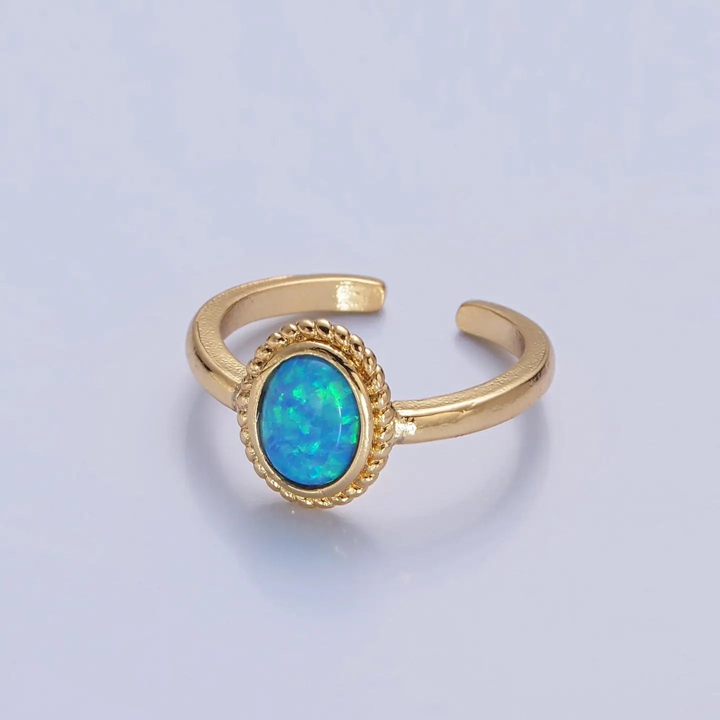Dainty Blue Opal Stone Braided Ring October Birthstone Ring Brass, 24k Gold Filled Hypoallergenic Tarnish Resistant Nickel and Lead Free Adjustable Gold Open Ring Size: US 6.5 Adjustable Imported