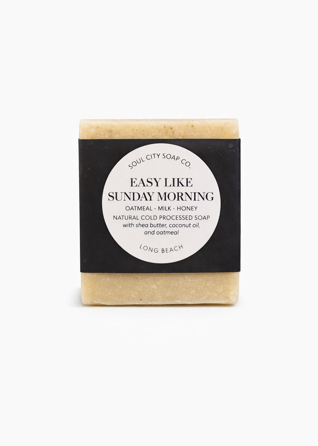 Meet Easy Like Sunday Morning, a cold process soap bar with ground oatmeal as an exfoliant. Handcrafted in small batches in the USA. Made with moisturizing oils + shea butter for...
